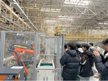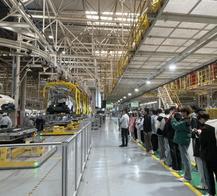 12月16日下午,我院25级机器人工程专业1-2班的同学们满怀好奇与期待,奔赴广汽埃安新能源汽车股份有限公司长沙分公司,开启了一场沉浸式专业见习之旅。这场与行业一线的亲密接触,让同学们跳出课本框架,直观感受科技与制造碰撞的无限魅力。