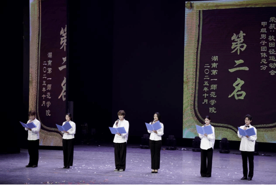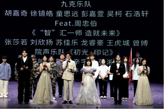晚会在热烈的氛围中拉开帷幕。校体育舞蹈队带来的开场舞《同心舞梦》,以优雅的摩登团体舞韵律,展现了新生从独立个体到集体同行的青春状态,瞬间点燃现场气氛。13 个节目形式多样:25 级新生合唱《炬火相传・生生不息》,用《我爱你中国》等曲目传递家国情怀;三支乐队与弦动吉他社演绎《身骑白马》《曹操》等组曲,摇滚节奏燃爆全场;智造院舞蹈队《What is love》《Jump》展现青春态度;模特秀《青春蜕变》呈现新生成长;朗诵《“智” 汇一师・“造” 就未来》彰显学院实力与育人理念;教导大队《迷彩青春》以旗术传递担当;舞台剧《烽火中的青春答卷》回望历史、激励青年。
