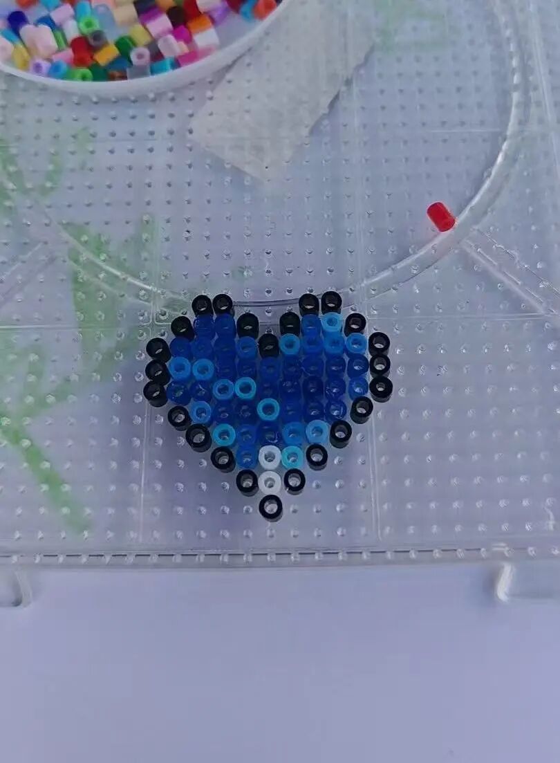 同学们坐在拼豆区专心地将一粒粒豆子按图纸放入拼豆板中,每一个动作都仔细小心。拼豆完成后,同学们会小心翼翼地把它们拿去熨烫。当同学们拿到自己亲手制作的红丝带后,心中满是成就感,同时也对防艾知识产生出强烈共鸣。